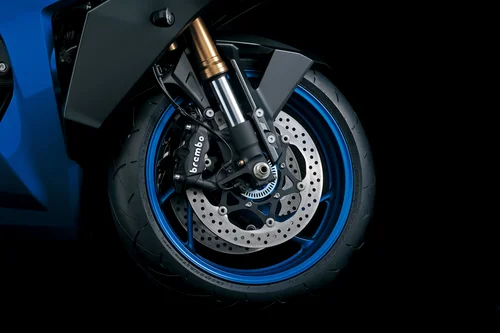 De GSX-S1000GT is uitgerust met uitstekend doseerbare radiaal gemonteerde Brembo-vierzuigerremklauwen voor met 310 mm remschijven. Dit remsysteem van Brembo is bijzonder licht en zorgt voor optimaal remvermogen.